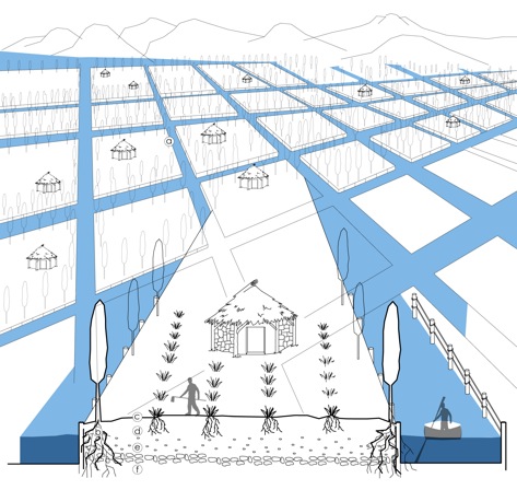 La rete sarà dotata di qualità formali e figurative in grado di contribuire al disegno dello spazio aperto e dello spazio costruito della Città, stabilendo un dialogo creativo con il reticolo idrografico naturale e ripristinandone relazioni biologiche ed ecologiche tra le parti. La rete ipotizzata sfrutterebbe il principio dei vasi comunicanti per autobilanciarsi, come succedeva in passato, generando morfologie urbane permeabili, connettive e pervasive. Il sistema sarebbe composto da punti, linee e superfici d'acqua organizzate in un circolo virtualmente senza ingressi e senza uscite: il paesaggio idrico che sarà necessario costituire per la megalopoli sarà paradossalmente non troppo distante da quello che l'apice della cultura urbana azteca aveva prodotto a Tenochtitlán, in una equilibrata simbiosi con gli elementi ecosistemici della Cuenca de México.